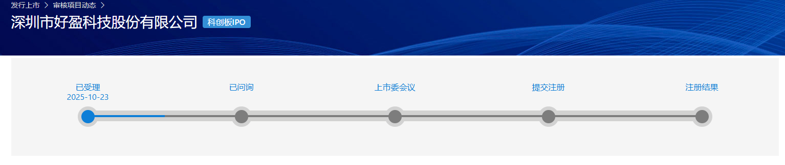 《科创板日报》10月27日讯(记者 陈俊清) 上交所官网显示,深圳市好盈科技股份有限公司(下称:好盈科技)科创板IPO近日获受理,保荐机构为民生证券。