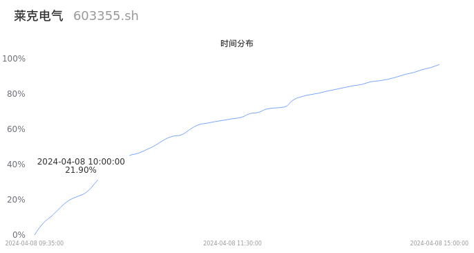 603355莱克电气2024年04月08日成交2.59万手,成交金额6296.27万元,相较昨日缩量1629手,换手率0.46%,成交清淡。