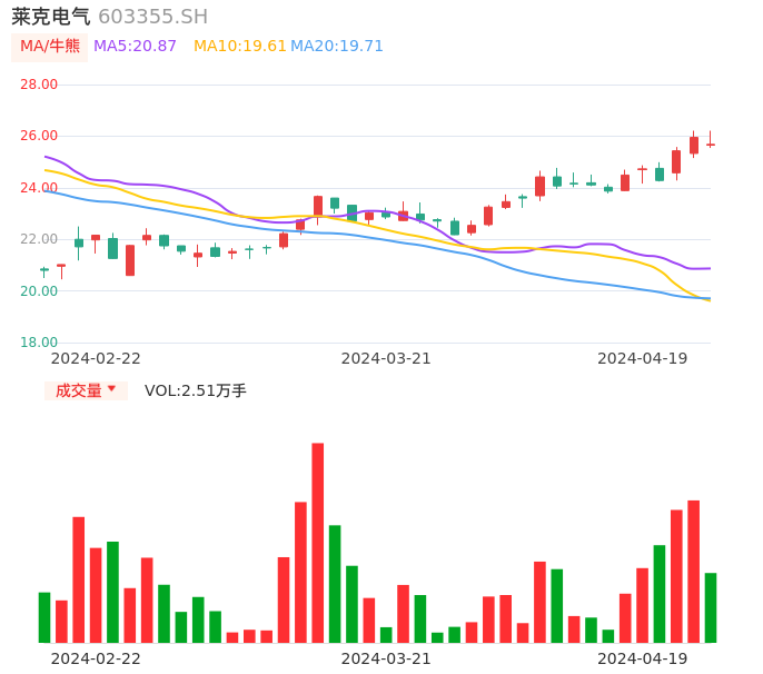 04月19日,莱克电气收报25.68,股价涨幅-1.04%,成交金额6477.72万元,换手率0.44%。