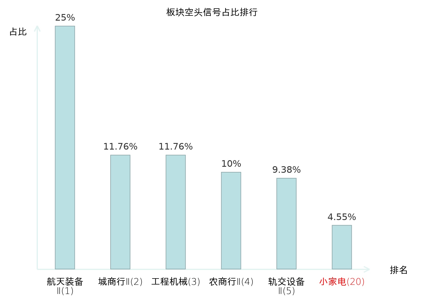 全市场所有行业板块中主力空头信号占比排名中,航天装备Ⅱ板块位居第一。出版板块名次提升最快,较昨日上升106位。