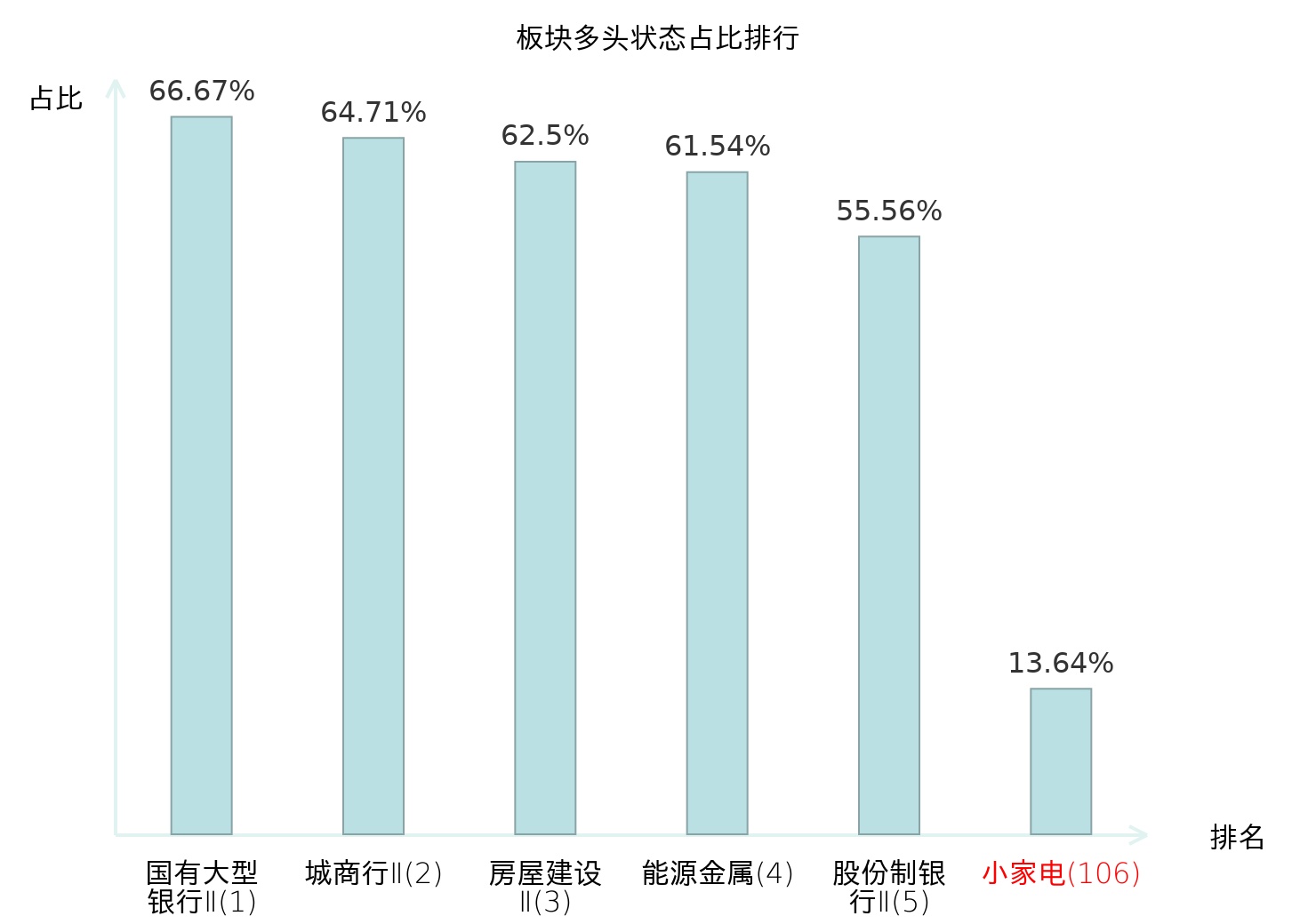 全市场所有行业板块中主力多头状态占比排名中,国有大型银行Ⅱ板块位居第一。普钢板块名次提升最快,较昨日上升65位。