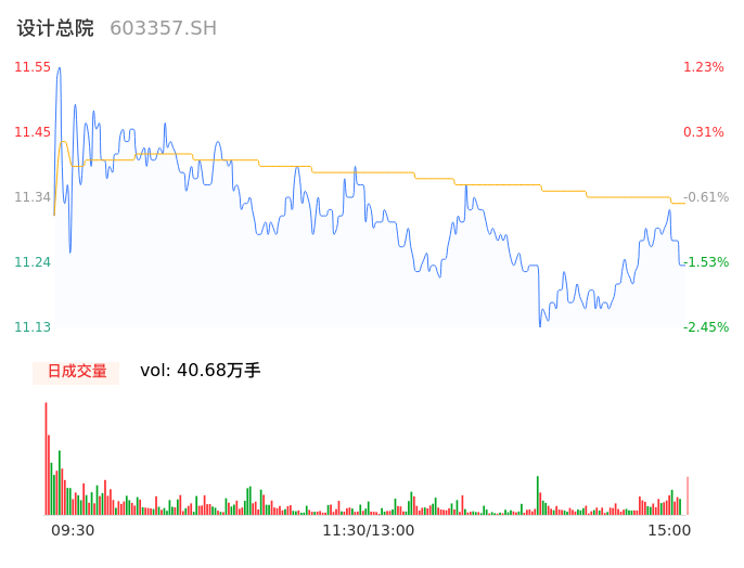 04月25日,设计总院收报11.24,股价涨幅-1.49%,成交金额4.61亿元,换手率7.46%。