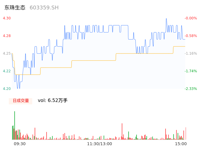 04月26日,东珠生态收报4.28,股价涨幅-0.47%,成交金额2773.80万元,换手率1.46%。