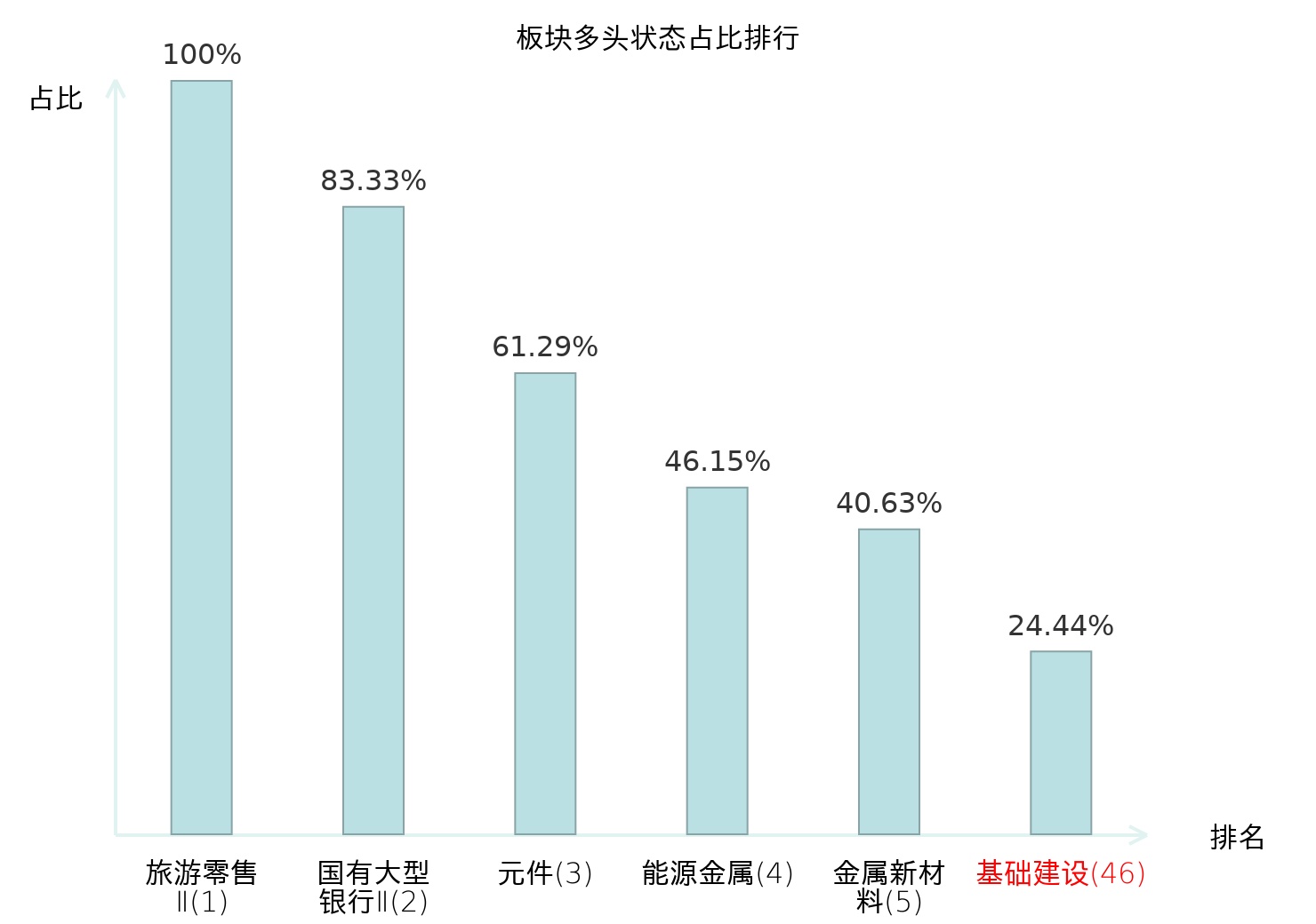从主力宝信号数据分析,东珠生态所属的基础建设板块中共11只股票处于主力多头状态,主力多头状态占比在全行业中排名第46位,较昨日下降21位。排名越高说明主力对于板块整体看多意愿越强;此次排名下降反映主力对该板块的看多强度有所减弱。全市场所有行业板块中主力多头状态占比排名中,旅游零售Ⅱ板块位居第一;数字媒体板块名次提升最快,较昨日上升67位。上述变动揭示了主力资金在不同行业间的配置倾向变化,为投资者评估板块相对吸引力提供了客观参考依据。