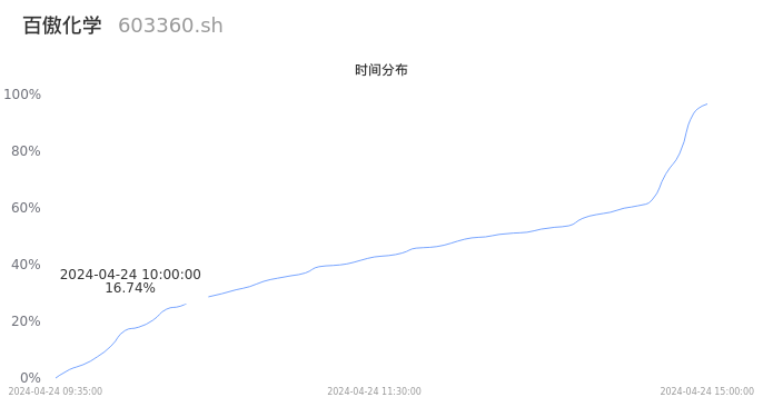 603360百傲化学2024年04月24日成交4.37万手,成交金额6381.69万元,相较昨日放量1.14万手,换手率1.22%,成交清淡。