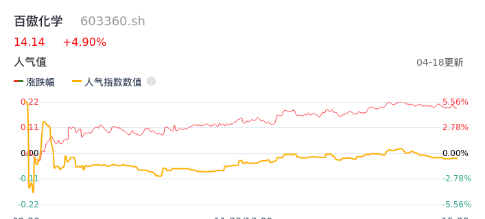 04月18日,百傲化学收报14.14,股价涨幅4.90%,成交金额8312.94万元,换手率1.67%。