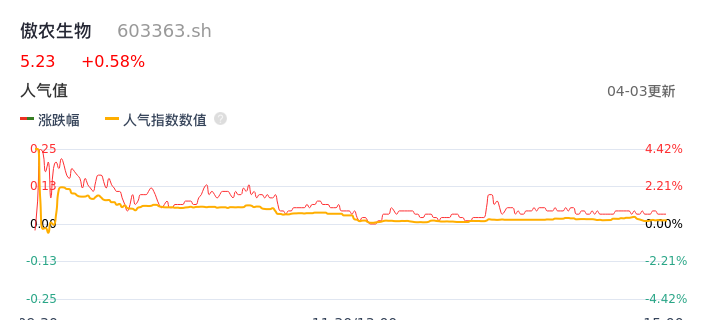 04月03日,傲农生物收报5.23,股价涨幅0.58%,成交金额2.59亿元,换手率6.62%。