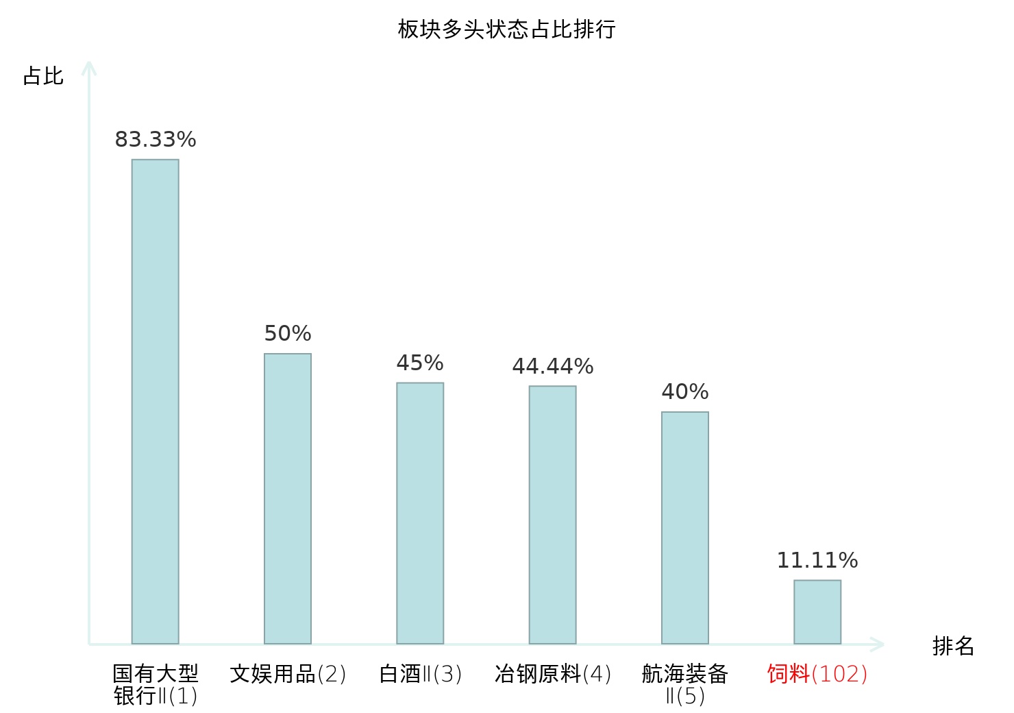 全市场所有行业板块中主力多头状态占比排名中,国有大型银行Ⅱ板块位居第一。其他家电Ⅱ板块名次提升最快,较昨日上升116位。