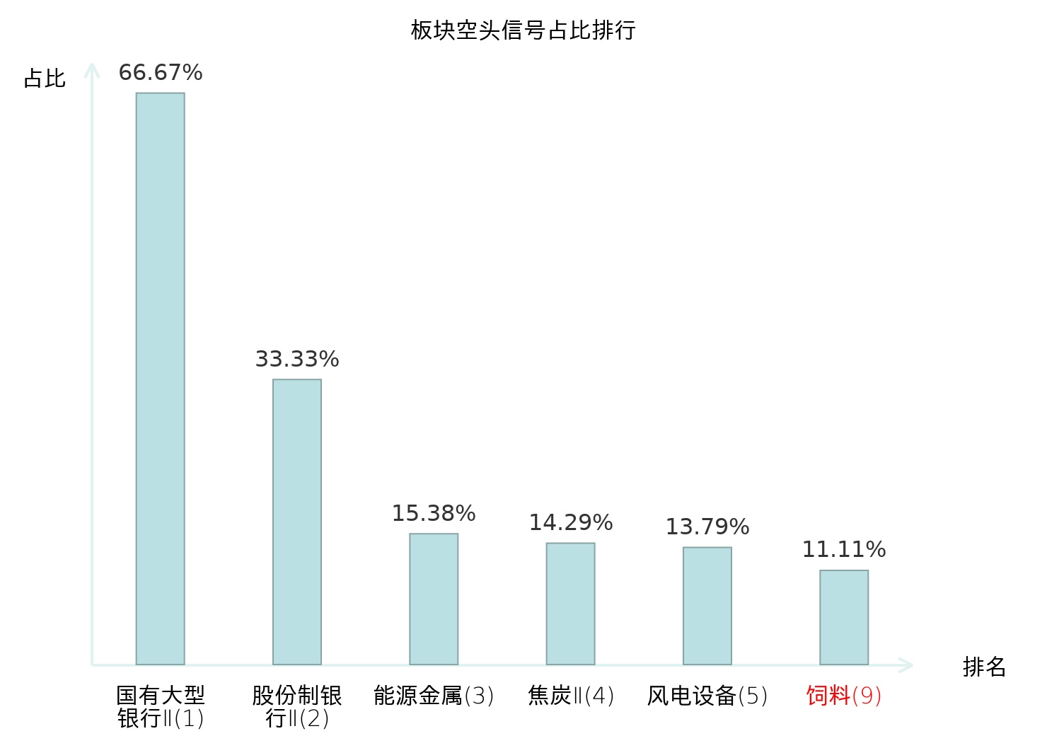 全市场所有行业板块中主力空头信号占比排名中,国有大型银行Ⅱ板块位居第一。风电设备板块名次提升最快,较昨日上升126位。