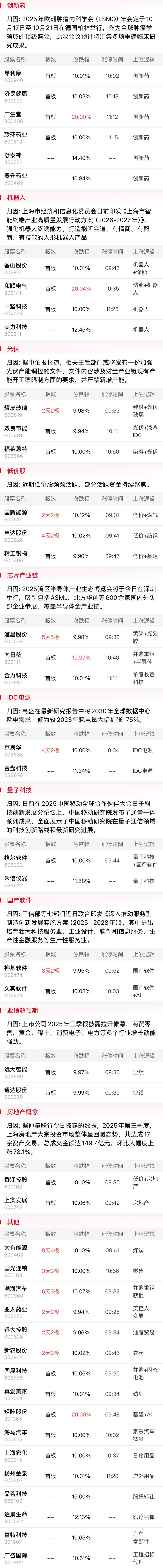 综合来看,今日早盘以震荡为主,三大指数均小幅上涨,两市半日成交额较昨日萎缩近4000亿,其中创新药、大消费方向震荡走强,国产软件也于盘中受消息刺激而异动拉升。而另一方面,军工股跌幅居前,半导体芯片、可控核聚变等前期热门赛道延续分化整理。整体而言,今日市场修复力度相对一般,耐心等待更为明确的转强信号出现更为稳妥。