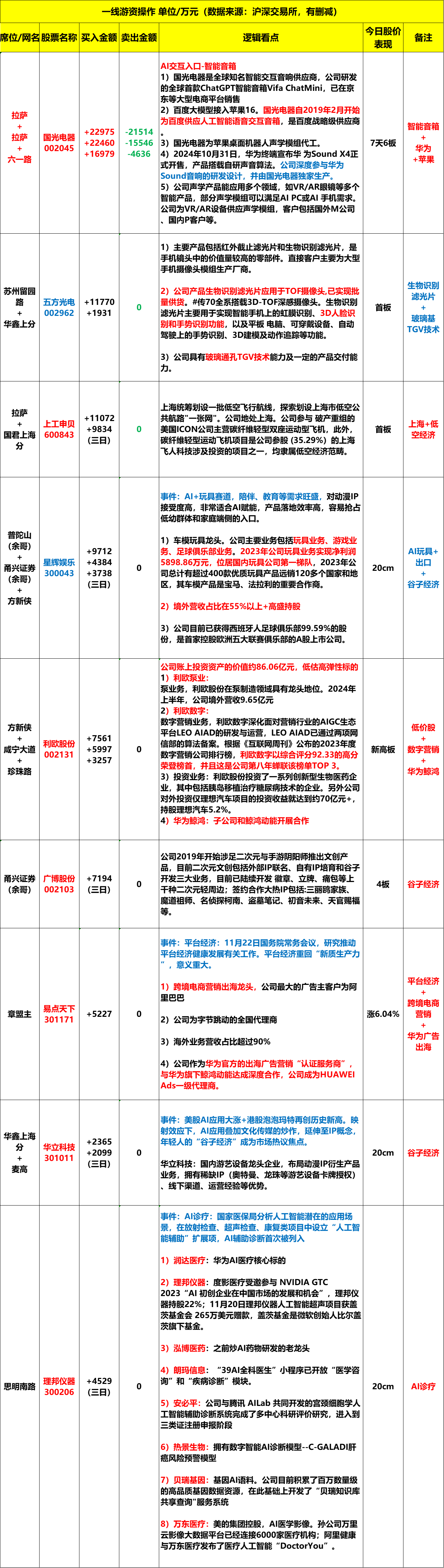 2024年11月25日周一,龙虎榜解析。