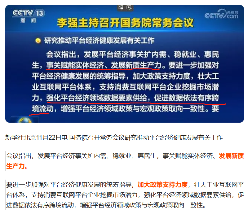 上周五,国常会关于平台经济的定调,非常高!平台经济事关发展新质生产力。记得在7月三中会议上,说到了民营经济促进法。