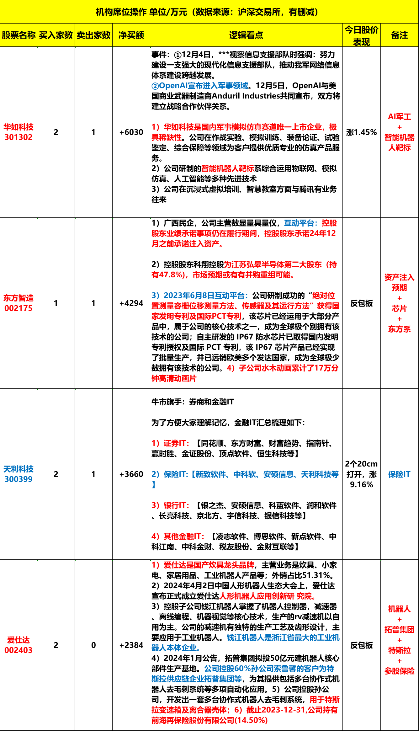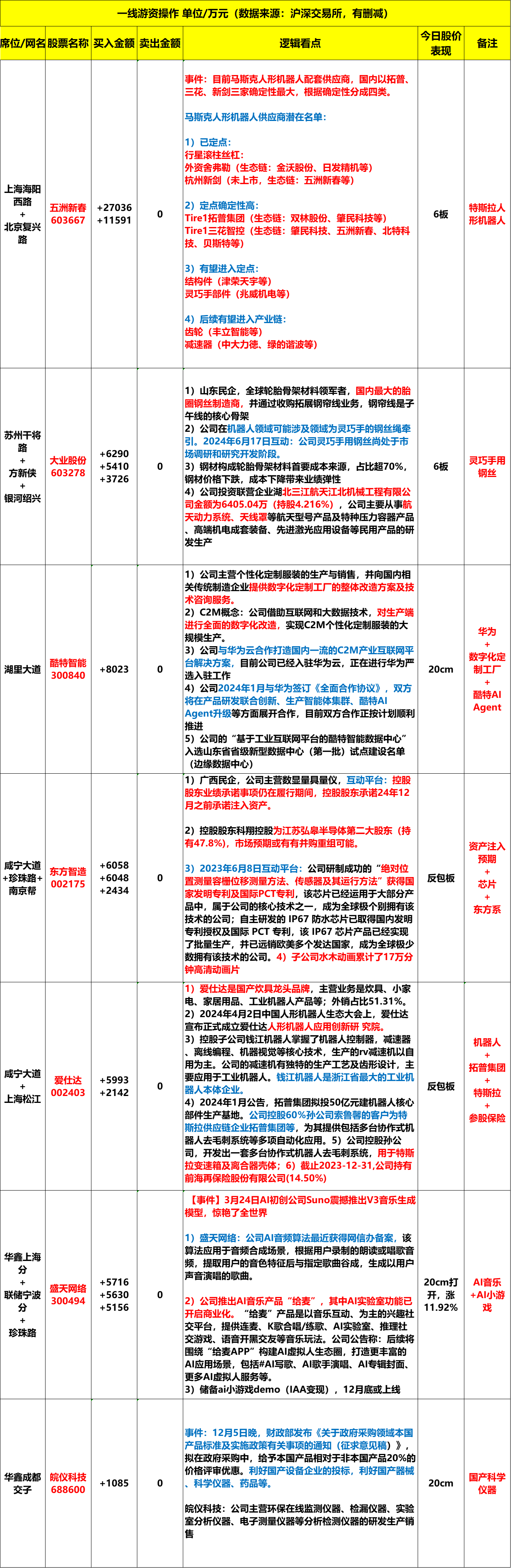 同理,机器人已经连续大涨5天,今天分歧换手是正常的,且其板块内部仍有5家维持在6板-7板的高度,整个涨停梯队保持良性状态,盘后龙虎榜显示,大业股份、五洲新春新等高标股新老资金接力还是很好的。