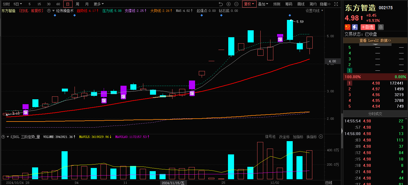 3)参考技术指标:东方智造-经伟操盘术指标-出现爆点信号