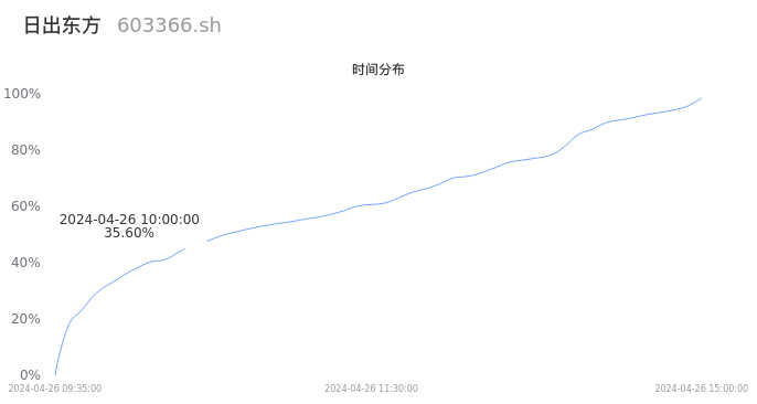 603366日出东方2024年04月26日成交36.82万手,成交金额1.73亿元,相较昨日放量27.76万手,换手率4.57%,成交清淡。