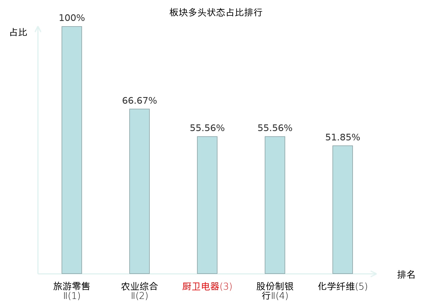 全市场所有行业板块中主力多头状态占比排名中,旅游零售Ⅱ板块位居第一。国有大型银行Ⅱ板块名次提升最快,较昨日上升103位。