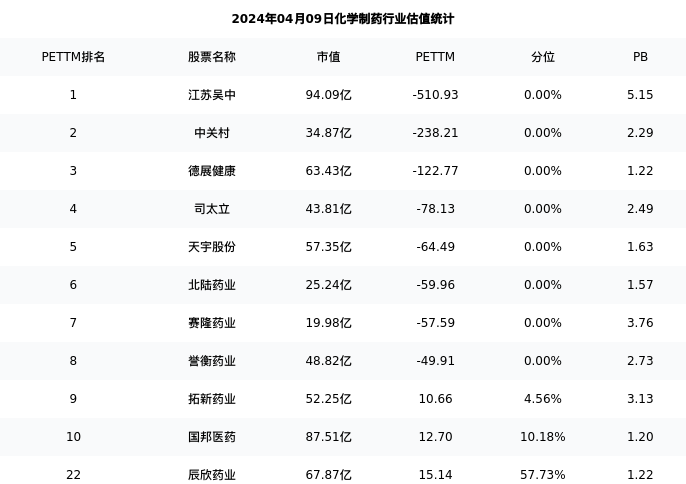 从估值角度看:辰欣药业最新市盈率PETTM为15.14,在行业内排名14/150,处于57.73分位。