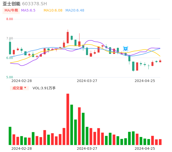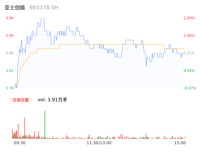 04月25日,亚士创能收报5.86,股价涨幅1.21%,成交金额2298.79万元,换手率0.91%。