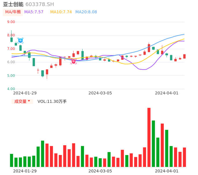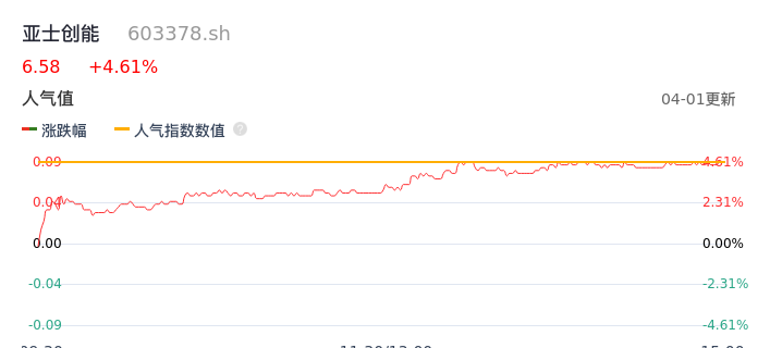04月01日,亚士创能收报6.58,股价涨幅4.61%,成交金额7331.58万元,换手率2.64%。