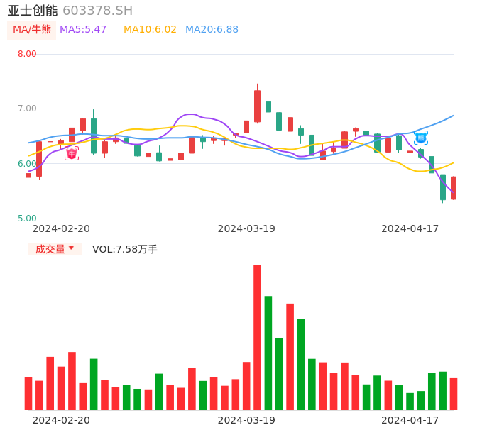 04月17日,亚士创能收报5.76,股价涨幅7.87%,成交金额4259.32万元,换手率1.77%。
