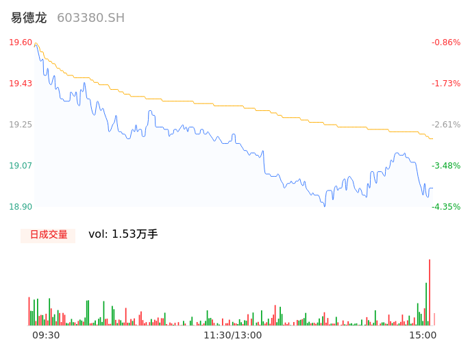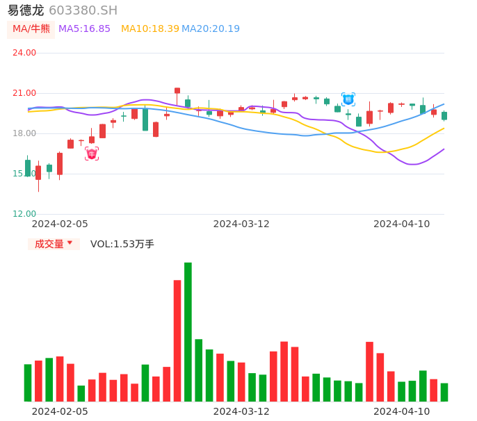 04月10日,易德龙收报19.03,股价涨幅-3.69%,成交金额2925.84万元,换手率0.95%。