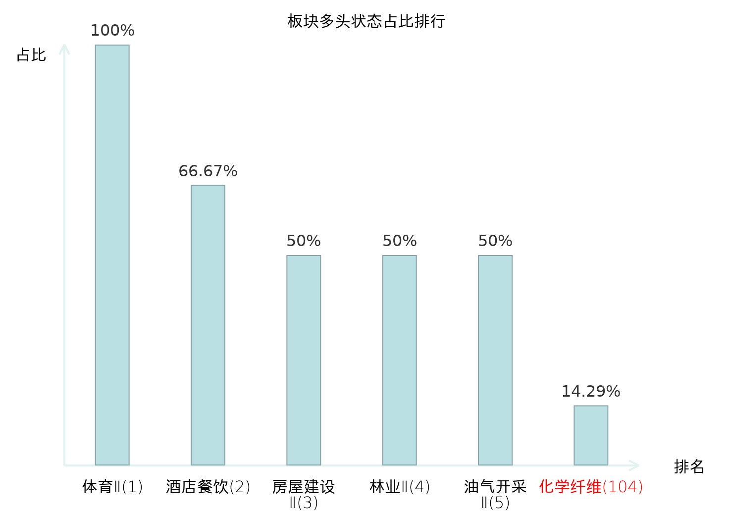 全市场所有行业板块中主力多头状态占比排名中,体育Ⅱ板块位居第一。国有大型银行Ⅱ板块名次提升最快,较昨日上升100位。