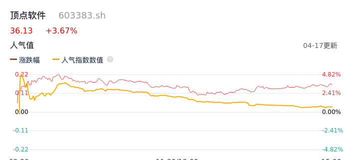 04月17日,顶点软件收报36.13,股价涨幅3.67%,成交金额1.83亿元,换手率2.99%。