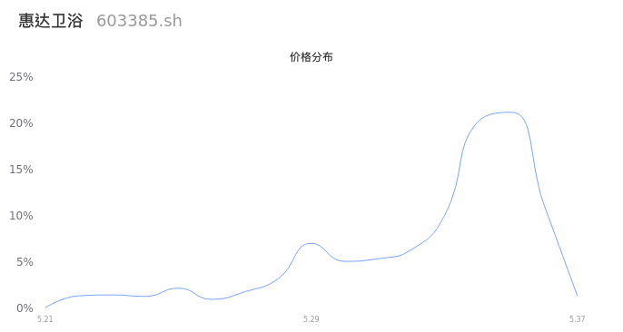 603385惠达卫浴2024年04月25日成交2.23万手,成交金额1185.64万元,相较昨日缩量3666手,换手率0.58%,成交清淡。