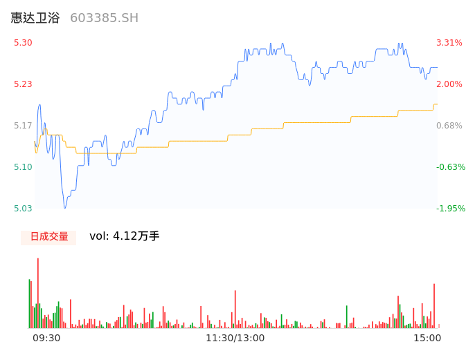 04月18日,惠达卫浴收报5.26,股价涨幅2.53%,成交金额2143.06万元,换手率1.08%。