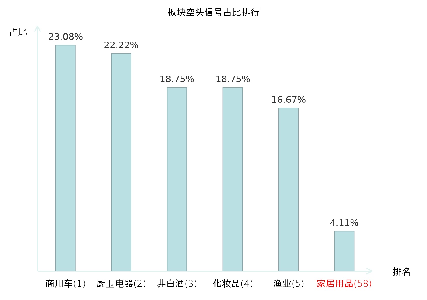 全市场所有行业板块中主力空头信号占比排名中,商用车板块位居第一。环保设备Ⅱ板块名次提升最快,较昨日上升96位。