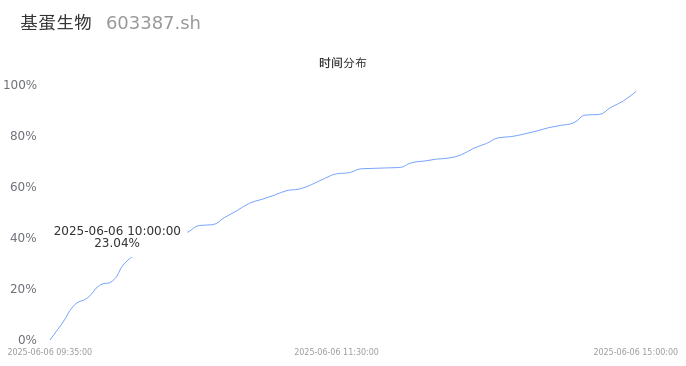603387基蛋生物2025年06月06日成交2.77万手,成交金额2284.01万,相较昨日缩量2.21万手,换手率0.55%,成交清淡。