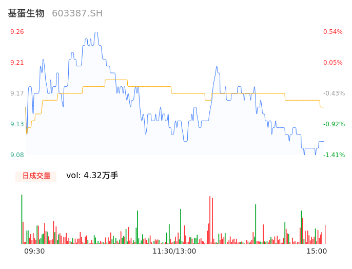 04月11日,基蛋生物收报9.10,股价涨幅-1.19%,成交金额3952.38万元,换手率0.85%。