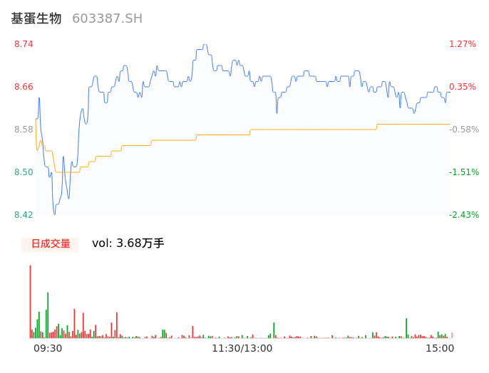 04月22日,基蛋生物收报8.65,股价涨幅0.23%,成交金额3159.84万元,换手率0.73%。