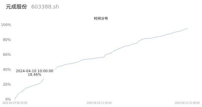 603388元成股份2024年04月10日成交19.78万手,成交金额1.16亿元,相较昨日放量2.22万手,换手率6.07%,成交清淡。
