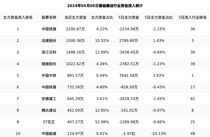 从主力资金流向来看,基础建设行业今日主力资金流入19.67亿元,在所有申万二级行业中排名:67/131。