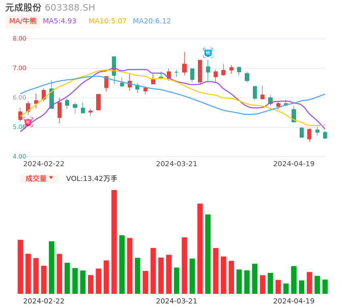 元成股份牛熊点指标分析报告-20240419
