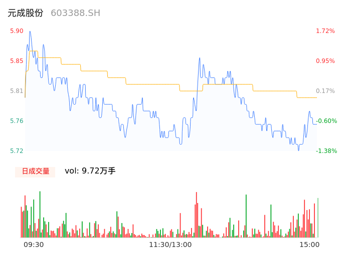 04月12日,元成股份收报5.74,股价涨幅-1.03%,成交金额5633.78万元,换手率2.98%。