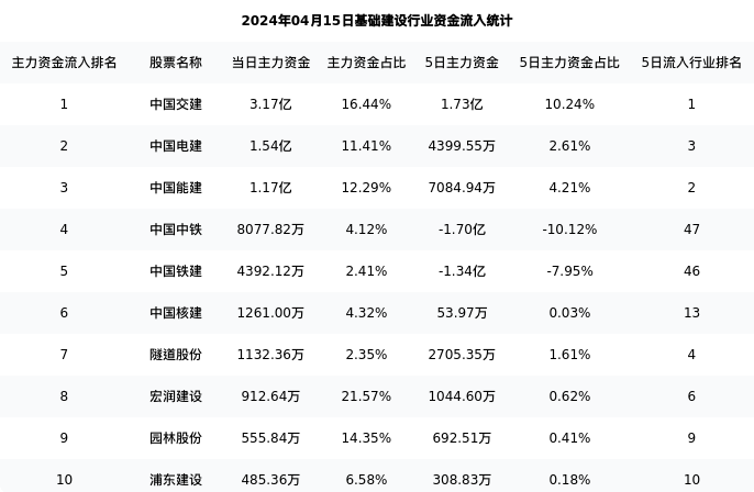 从主力资金流向来看,基础建设行业今日主力资金流入52.54亿元,在所有申万二级行业中排名:62/131。