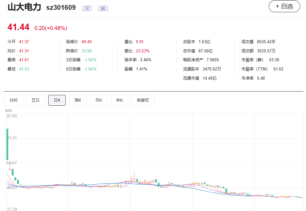 非ST或退市整理期的股中,山大电力以52.75%跌幅居首,股价暴跌的核心原因是多重风险共振,上市首日大幅高开,估值泡沫破裂后理性回归。此外,公司业绩增速大幅下滑,第三季度单季净利润同比下降5.59%。