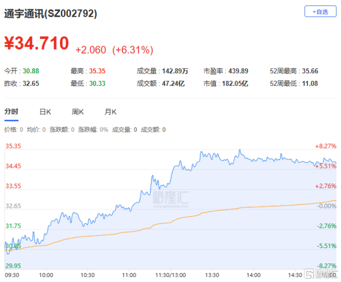 通宇通讯:今日上涨6.31%,全天换手率42.86%,成交额47.24亿元。机构净买入2.14亿元,深股通净买入6302.21万元,营业部席位合计净卖出1497.27万元。