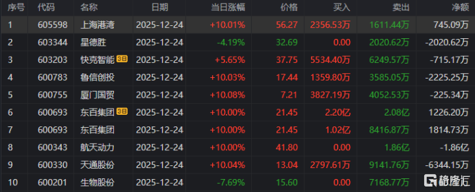 在龙虎榜中,涉及沪股通专用席位的个股有8只,航天动力的沪股通专用席位净卖出额最大,净卖出1.86亿元。