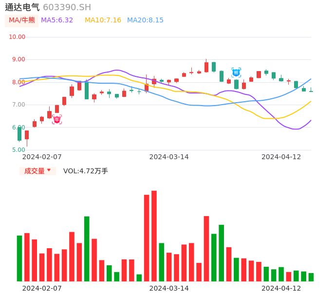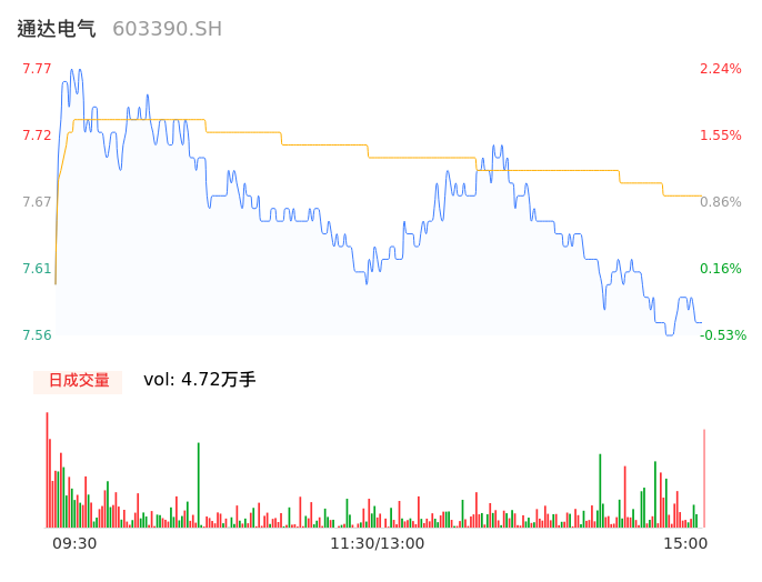 04月12日,通达电气收报7.58,股价涨幅-0.26%,成交金额3621.06万元,换手率1.35%。