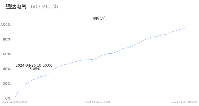 603390通达电气2024年04月26日成交3.91万手,成交金额2847.87万元,相较昨日放量3200手,换手率1.12%,成交清淡。