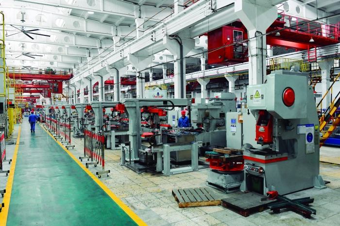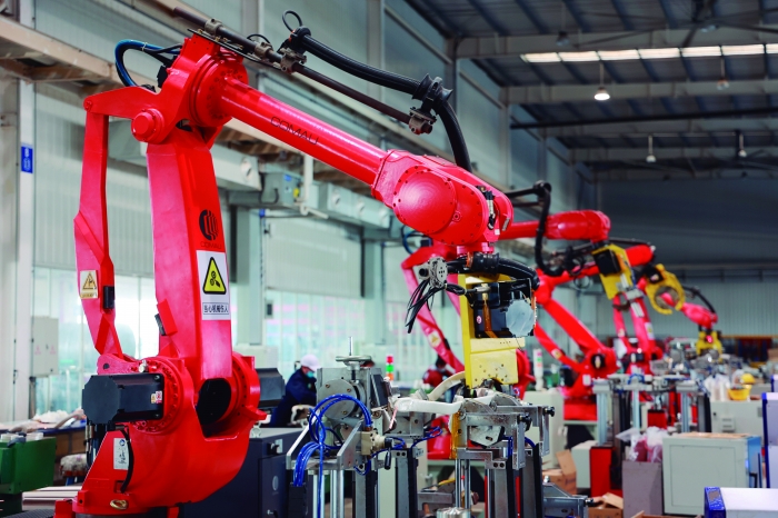 走进工厂车间,机械臂矩阵在工厂间挥舞、AGV小车来回穿梭配送、焊枪喷溅出金色火花。由于湘电股份业务涉及面广,涵盖电力能源、水利水务、石油化工、工程机械、矿山运输等领域,繁忙是湘电股份工厂的常态。