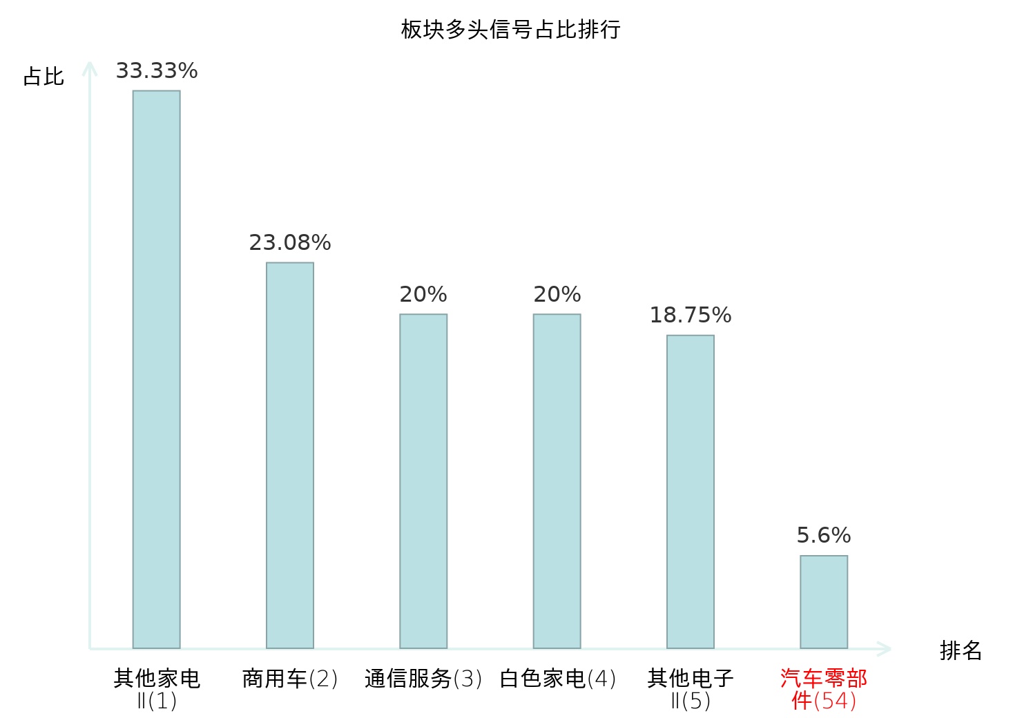 全市场所有行业板块中主力多头信号占比排名中,其他家电Ⅱ板块位居第一。其他家电Ⅱ板块名次提升最快,较昨日上升129位。