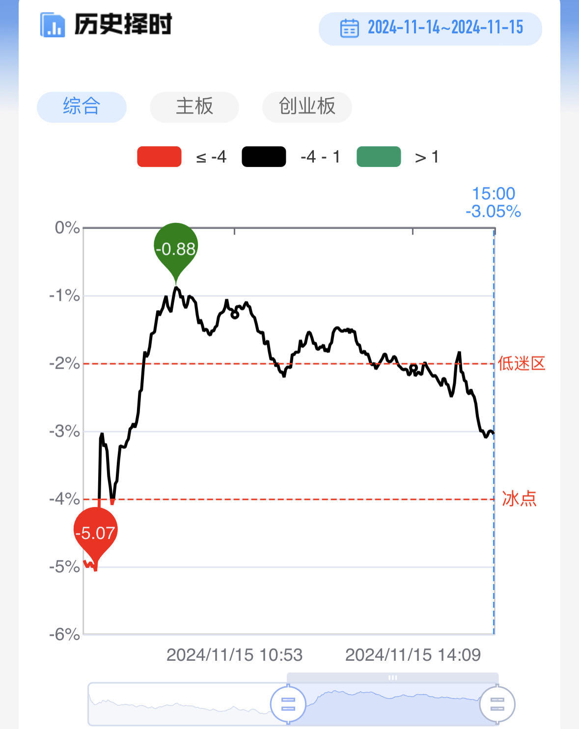 今日短线情绪冲高回落,最终仍处于低迷区之下
