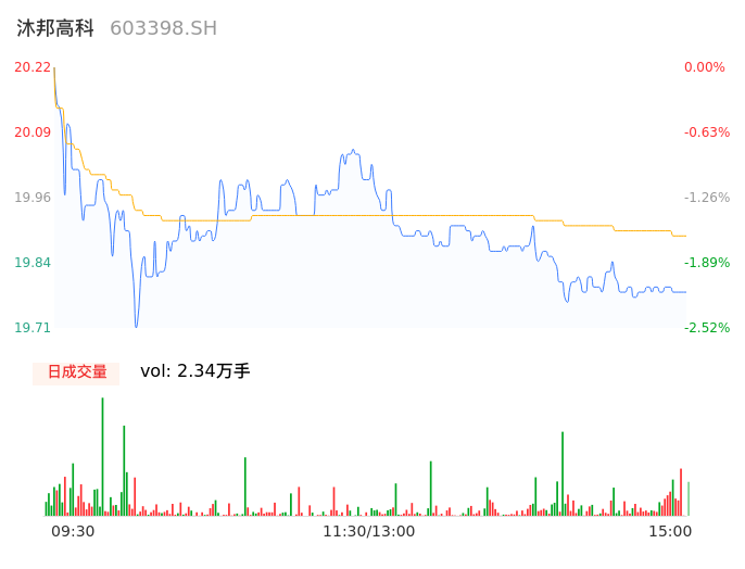 04月03日,沐邦高科收报19.77,股价涨幅-2.23%,成交金额4643.93万元,换手率0.68%。