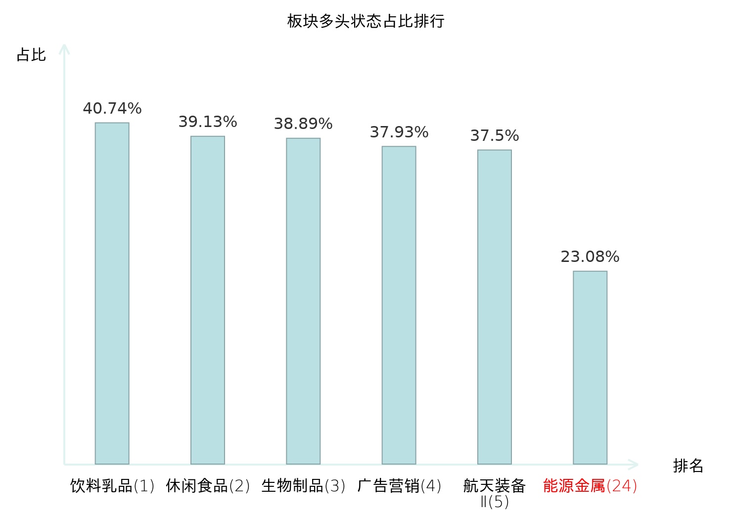 全市场所有行业板块中主力多头状态占比排名中,饮料乳品板块位居第一。国有大型银行Ⅱ板块名次提升最快,较昨日上升71位。