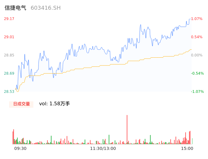 04月25日,信捷电气收报29.16,股价涨幅1.04%,成交金额4568.71万元,换手率1.12%。