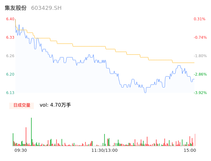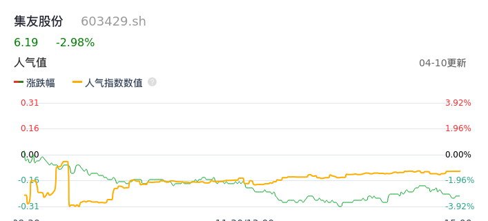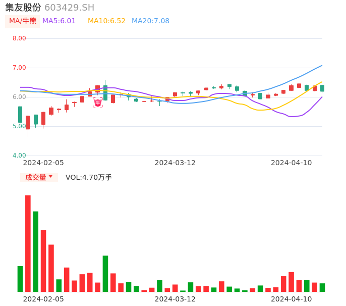 04月10日,集友股份收报6.19,股价涨幅-2.98%,成交金额2932.30万元,换手率0.90%。